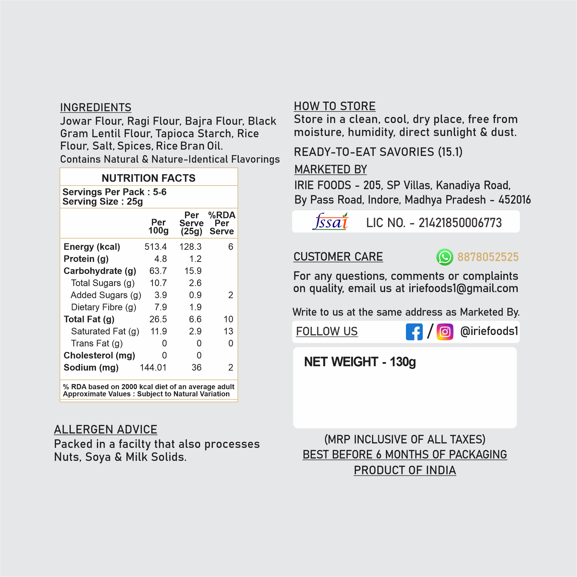 NET WEIGHT - 130gms